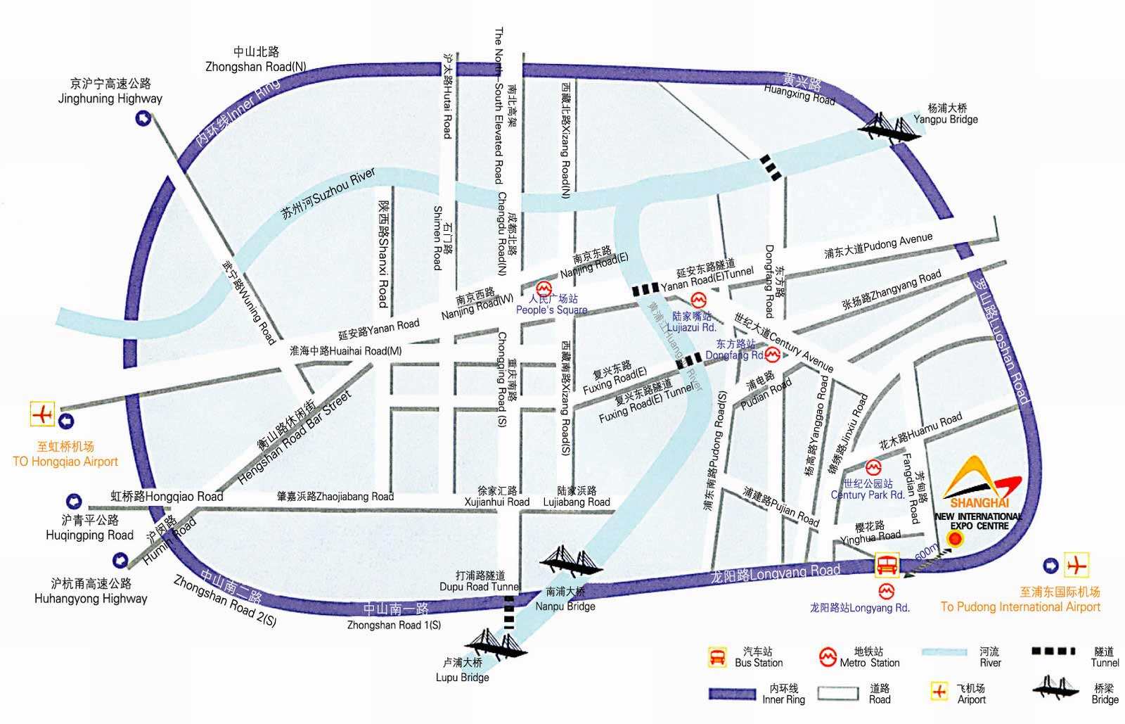 展馆位于龙阳路罗山路交汇处,易于通行。从市中心横跨南浦大桥、杨浦大桥可直达。展馆共拥有7个停车场可提供4730个停车位。
